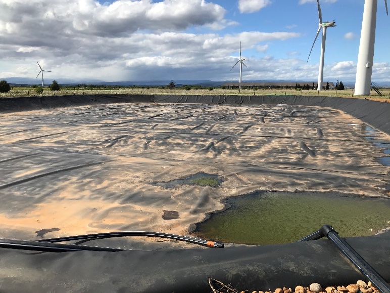 Le bassin d'évaporation des eaux de lavage des machines à vendanger