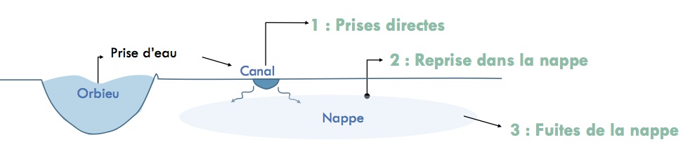 - Le tronc principal et les branches du canal n'étaient pas étanches et généraient des infiltrations naturelles dans le sol, particulièrement en certains endroits.
